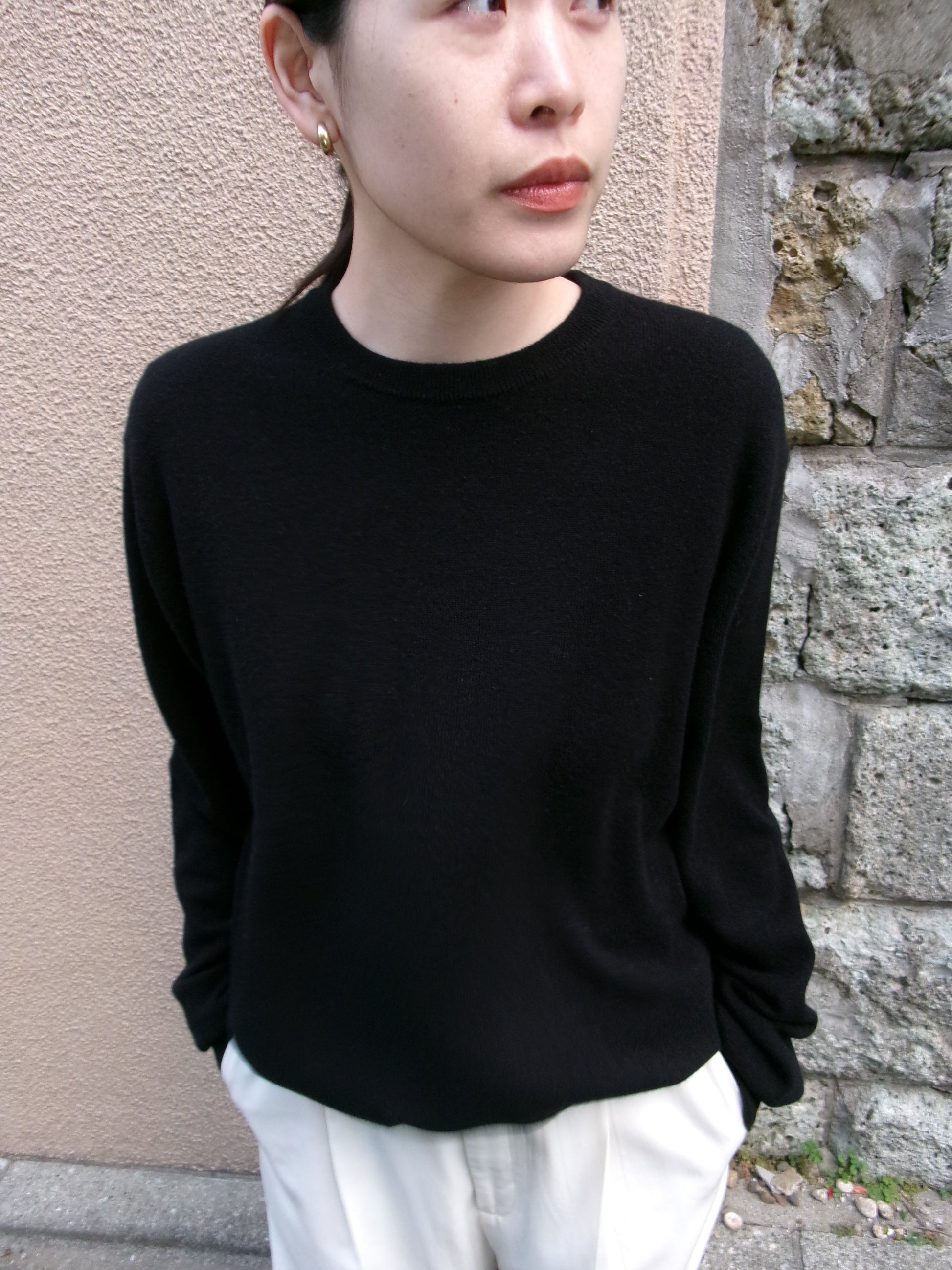 内モンゴルのカシミヤ山羊から取れる ホワイトカシミヤを使用した ニット。 繊維が細長いことによるチクチク感、 ゴワゴワ感の少なさと滑らかな風合いが特徴です。 ホワイトカシミヤを使用しているため、 色の深さも美しいです。