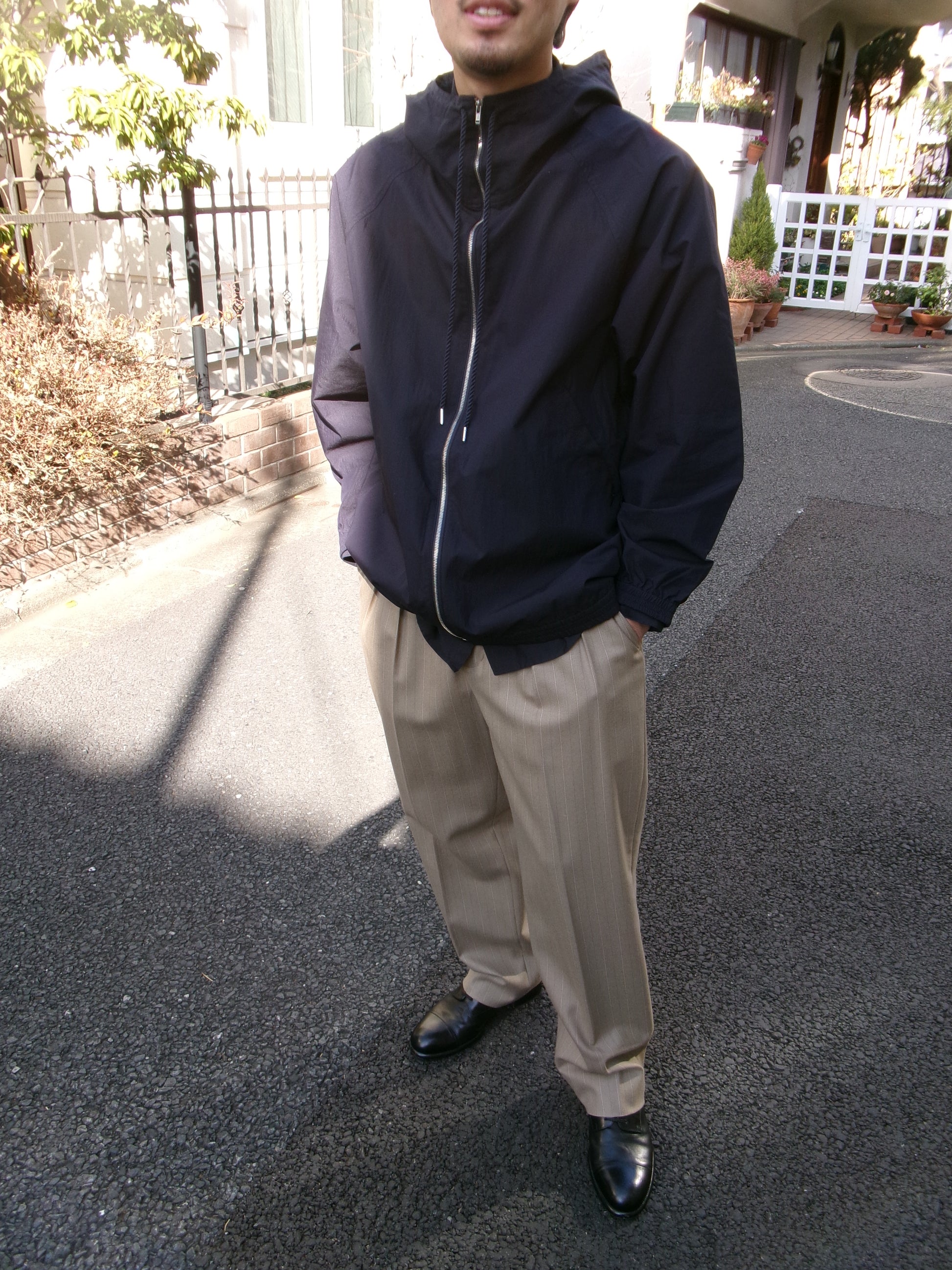 コットンナイロンのマウンテンパーカー。 コットンとリサイクルナイロンを高密度に織り、 緯糸の色を変え、奥行きのある色目に仕上げています。 また繊細なシボ感とコットン 100% のドローコードも FUJI らしさを感じる特徴です。 撥水加工を施しており、雨等に対応可能です。