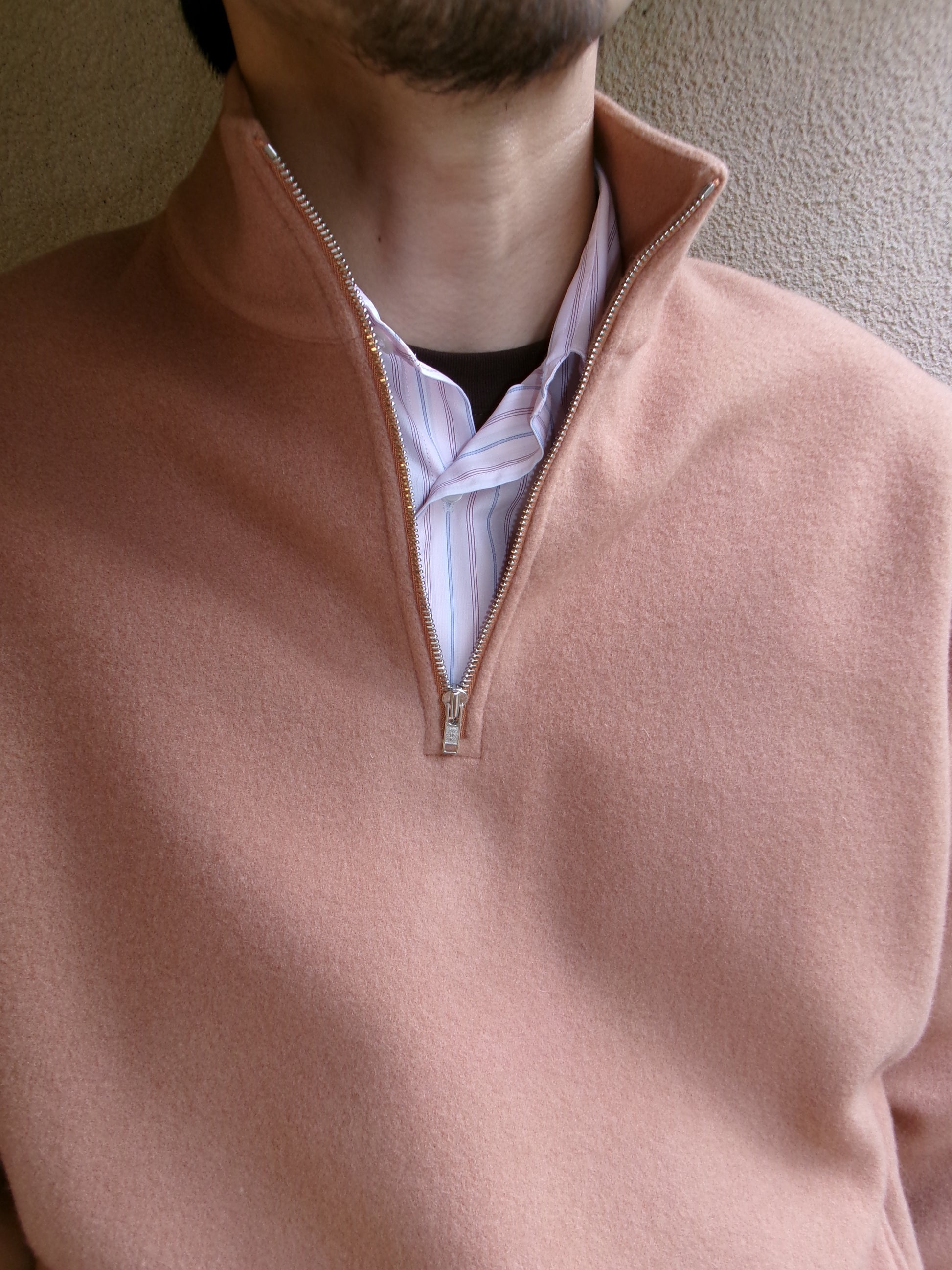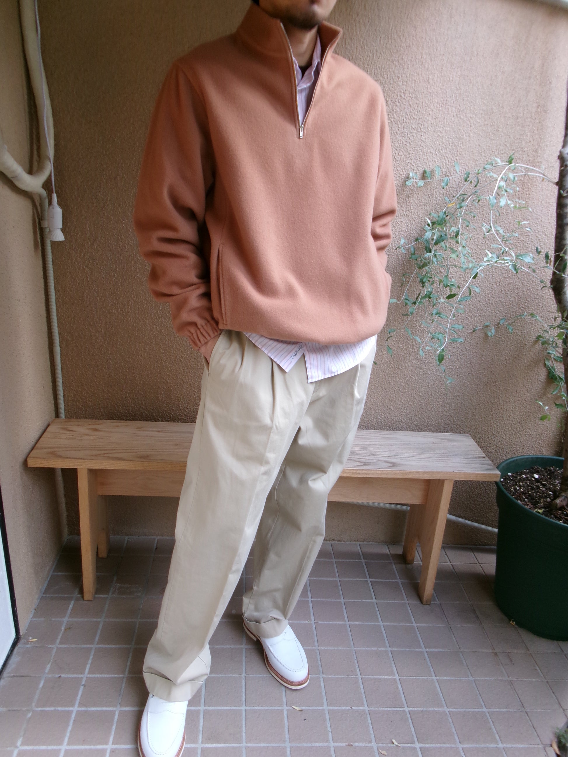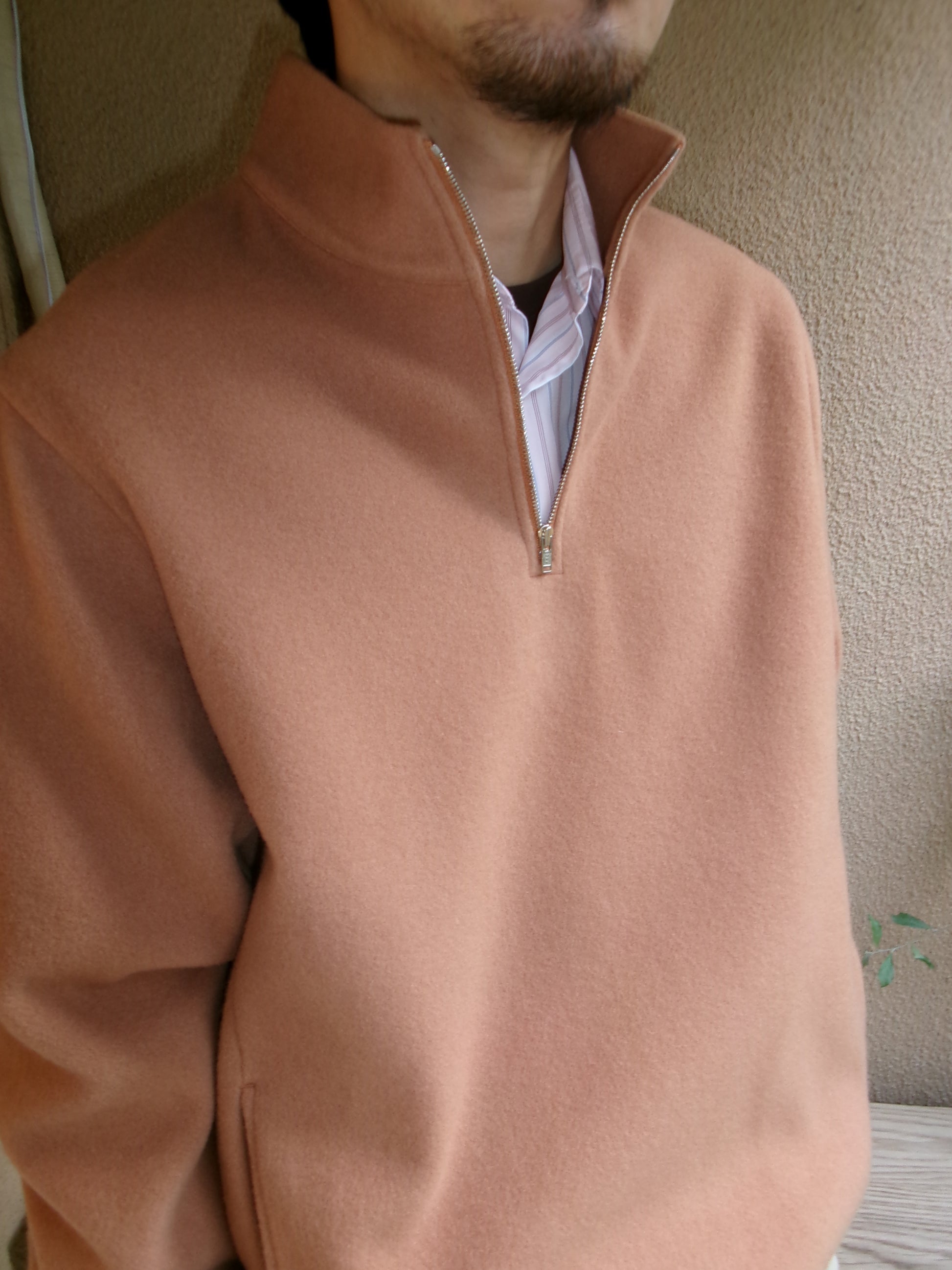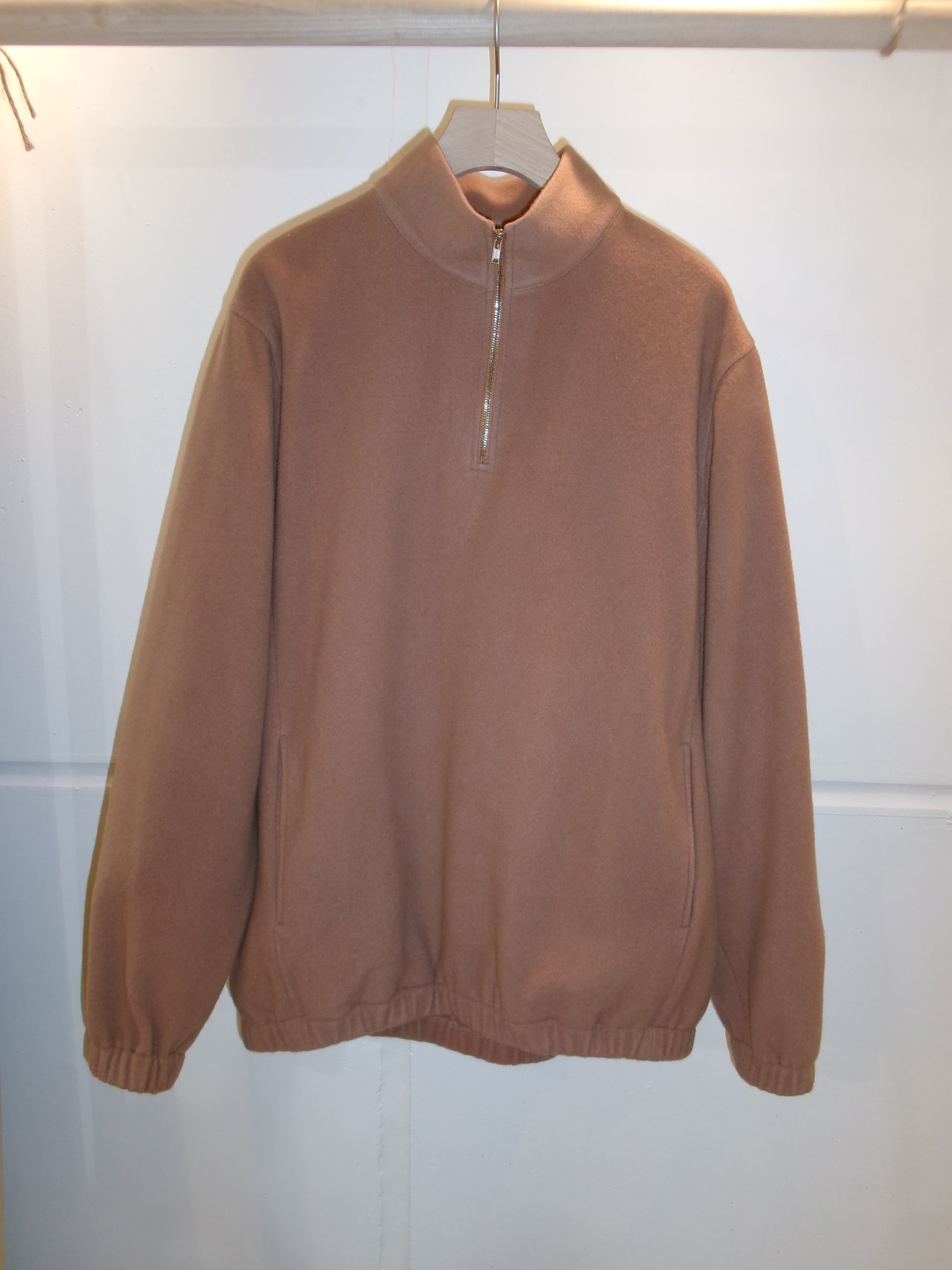 上質な S100 原料を使用したウールモッサのハーフジッププルオーバー。 S100 ウール 100%ならではの暖かさと軽さ、上質な風合いが特徴。 リラックス感のあるシルエットとシームポケット、 袖口と裾にゴム、ハーフジップにはエクセラファスナーを使用。