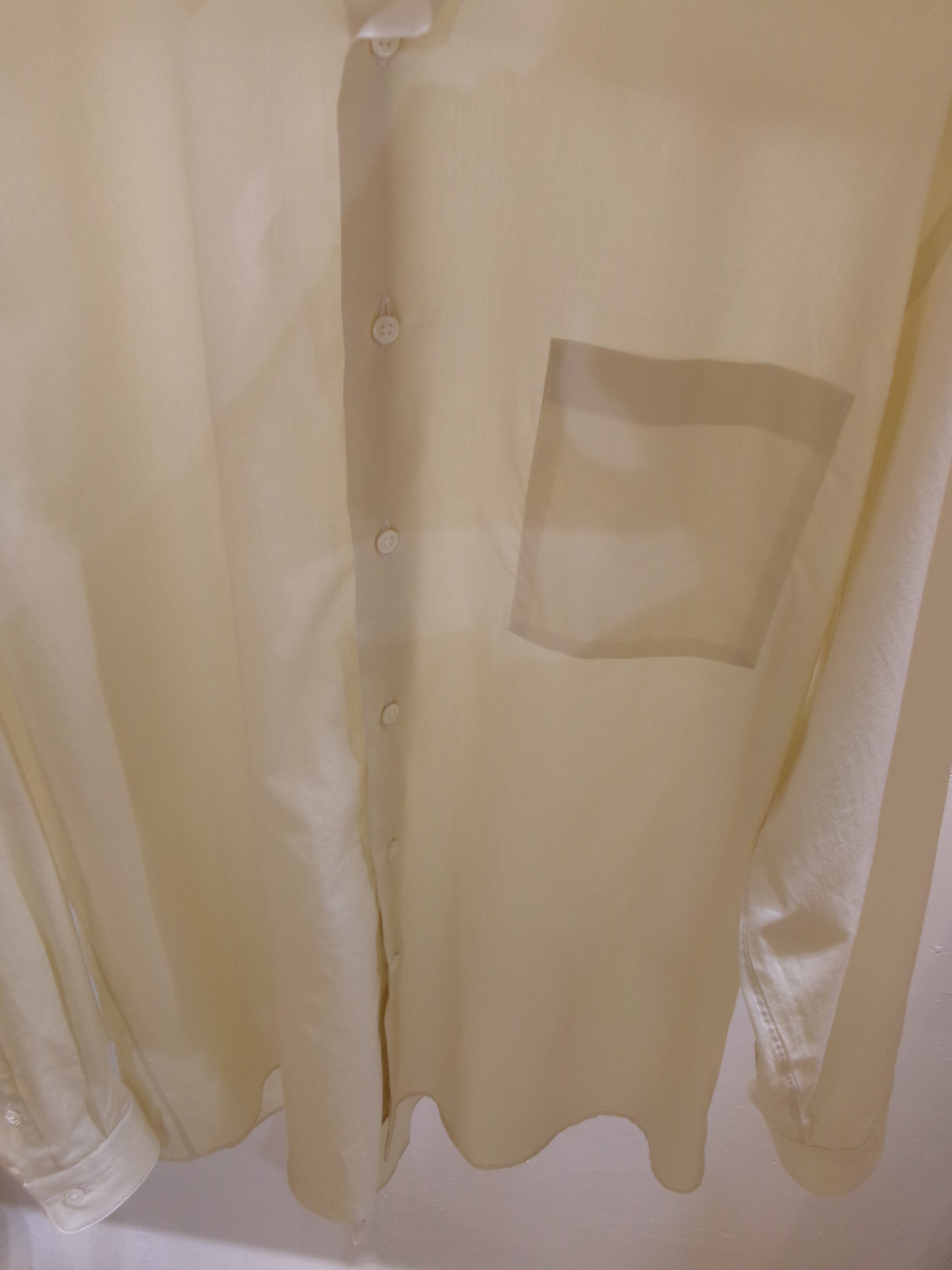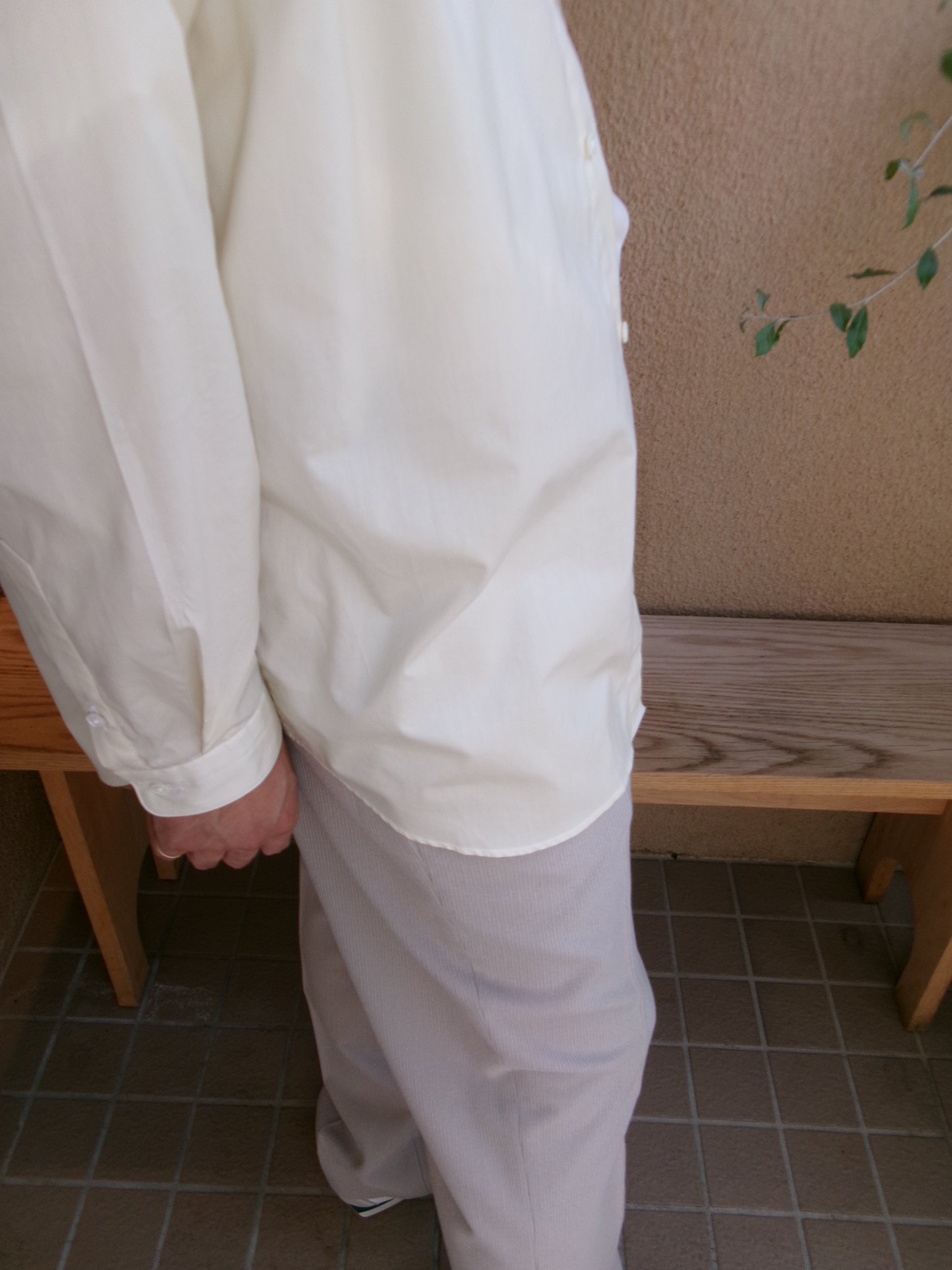 コットンツイルを使用したスタンダードシャツ。 極細番手の綿糸を高密度に織り上げたことによる、 ちょうどいい生地厚と仕上げのワッシャー加工によるやわらかな風合いが特徴です。 リラックスシルエット、3cm 間で 21 針の丁寧な仕立てです。