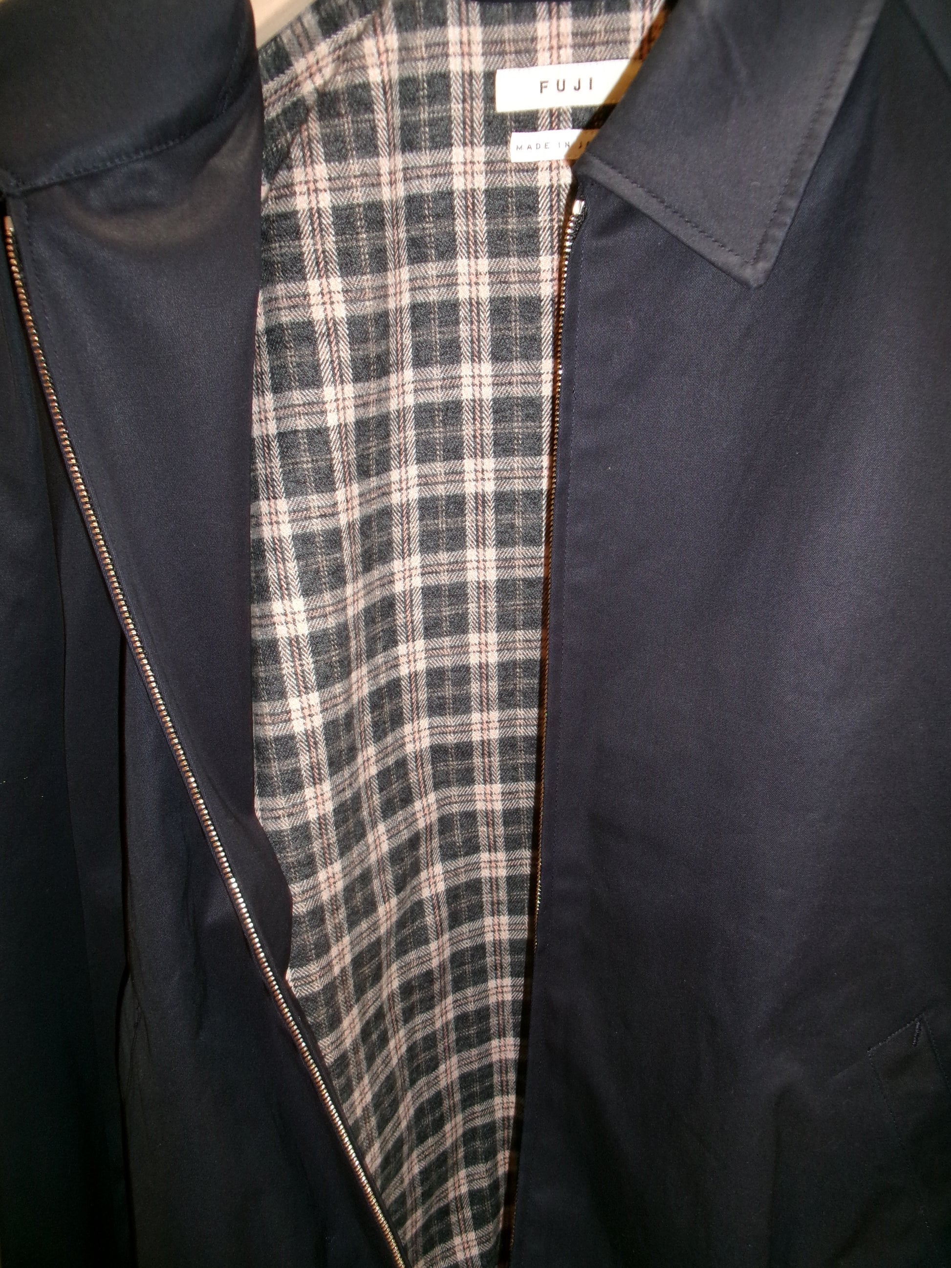縦横 60/2 のコットンギャバを使用したラグランブルゾン。 裏地にはウォーム感のある起毛コットンを使用しており、 高い保温性が特徴です。また FUJI らしい色合いのチェック柄も魅力です。 袖口のボタンによってタック感を感をつくることが出来ます。 本水牛ボタン、センタージップはエクセラファスナーを使用。