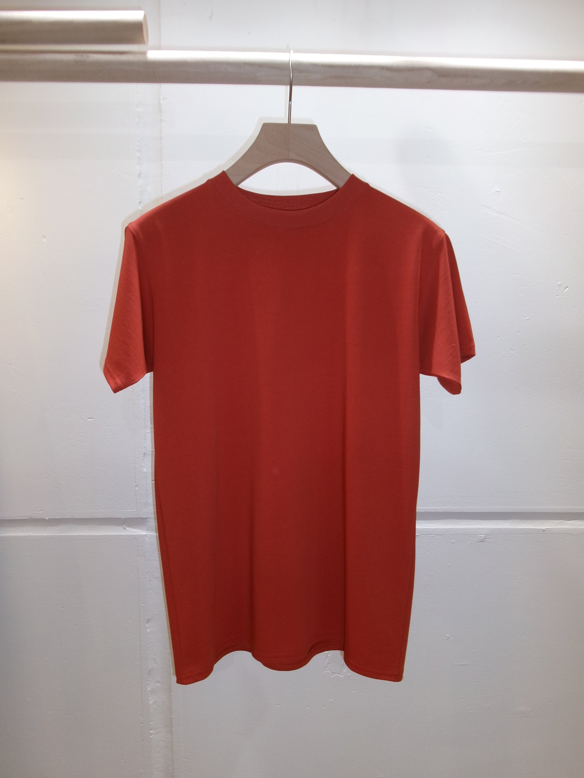 毛羽が少なく、高密度で織られた、ドライタッチな風合いが心地よいコットン100%S/S tシャツ。