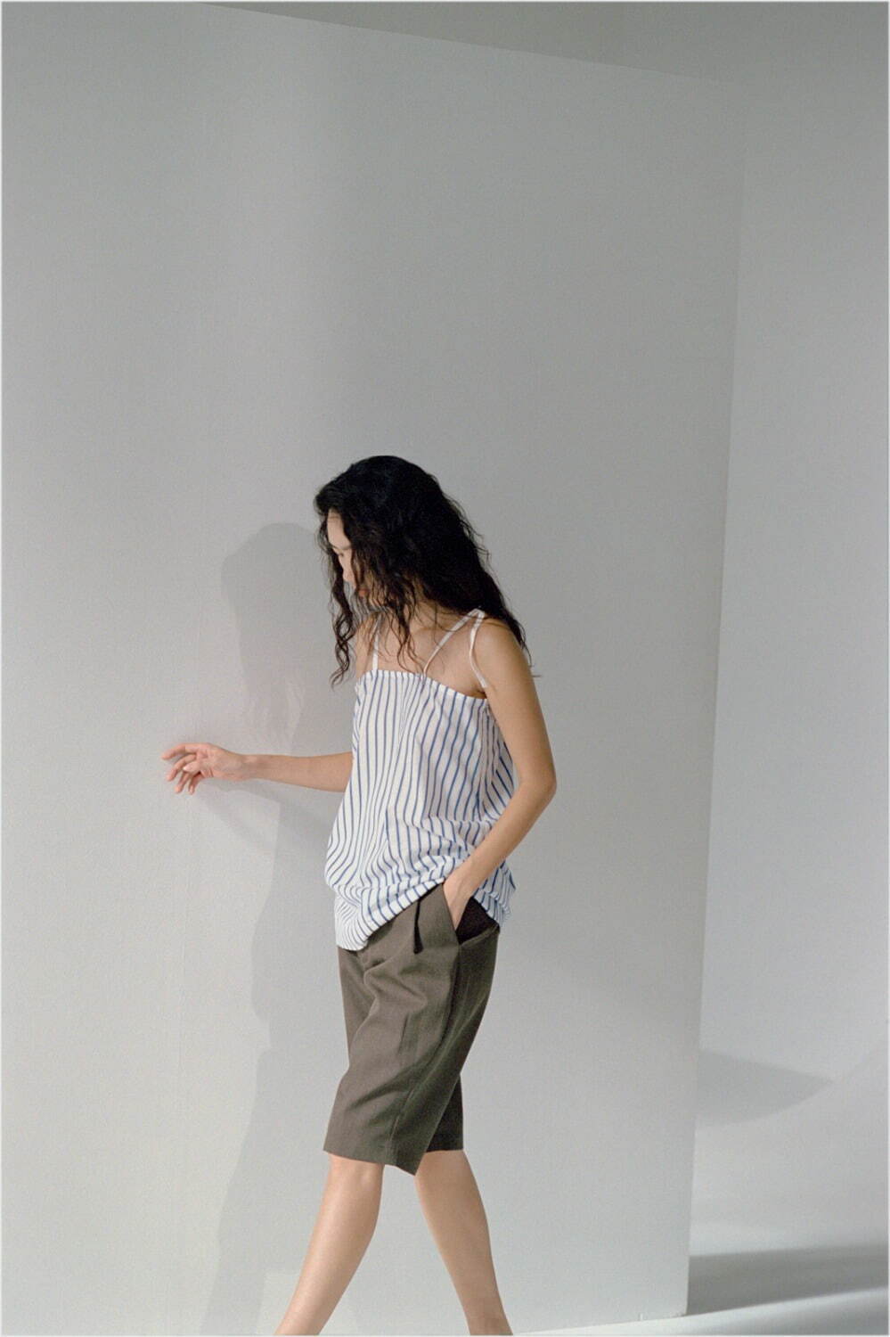 希少な機織り機と織物職人によって織り上げられた繊細なカラミ組織が特徴のキャミソール。肩紐の結び方、結ぶ長さによって見せ方を変えることができます。2サイズ展開。femme。