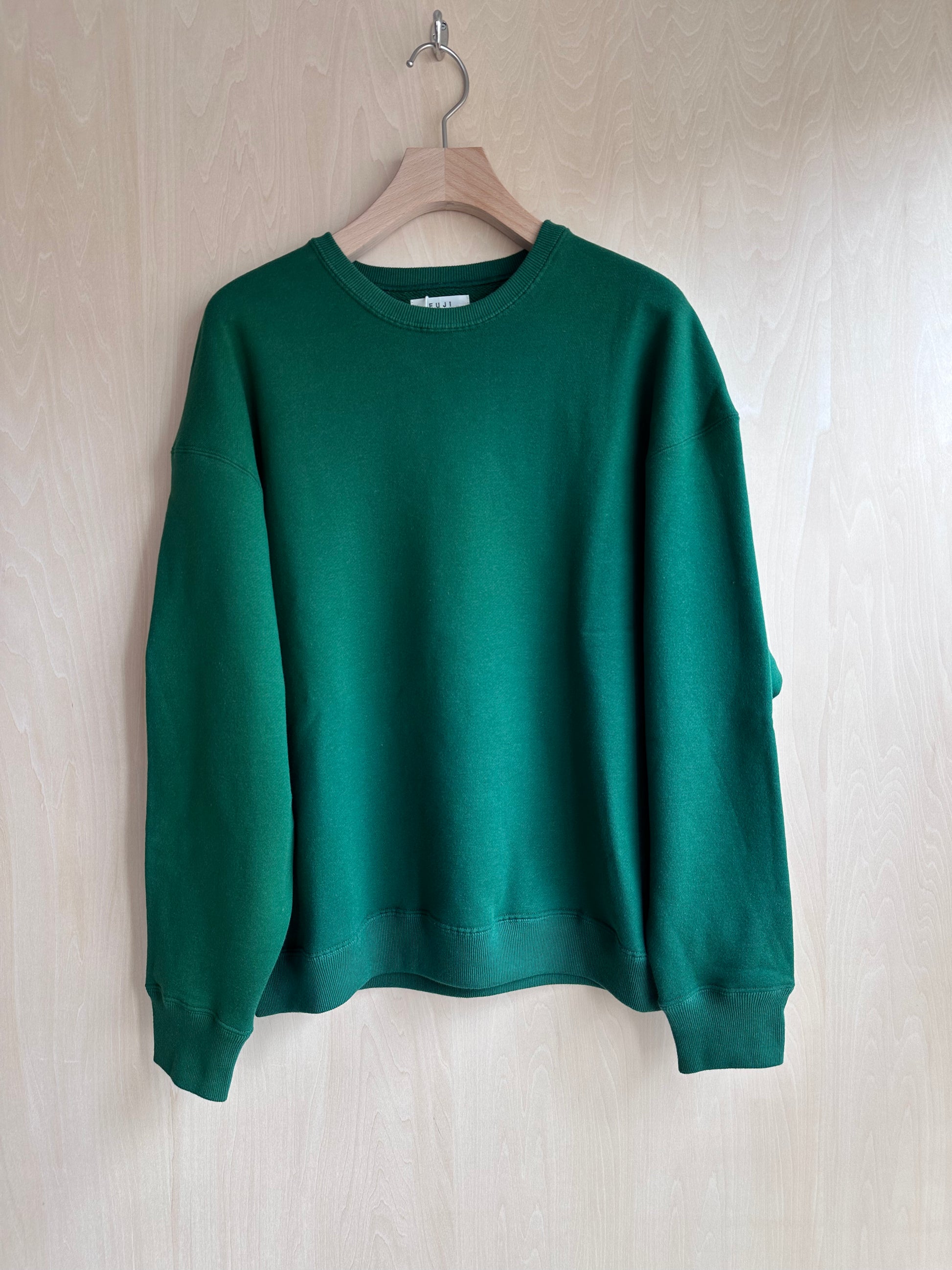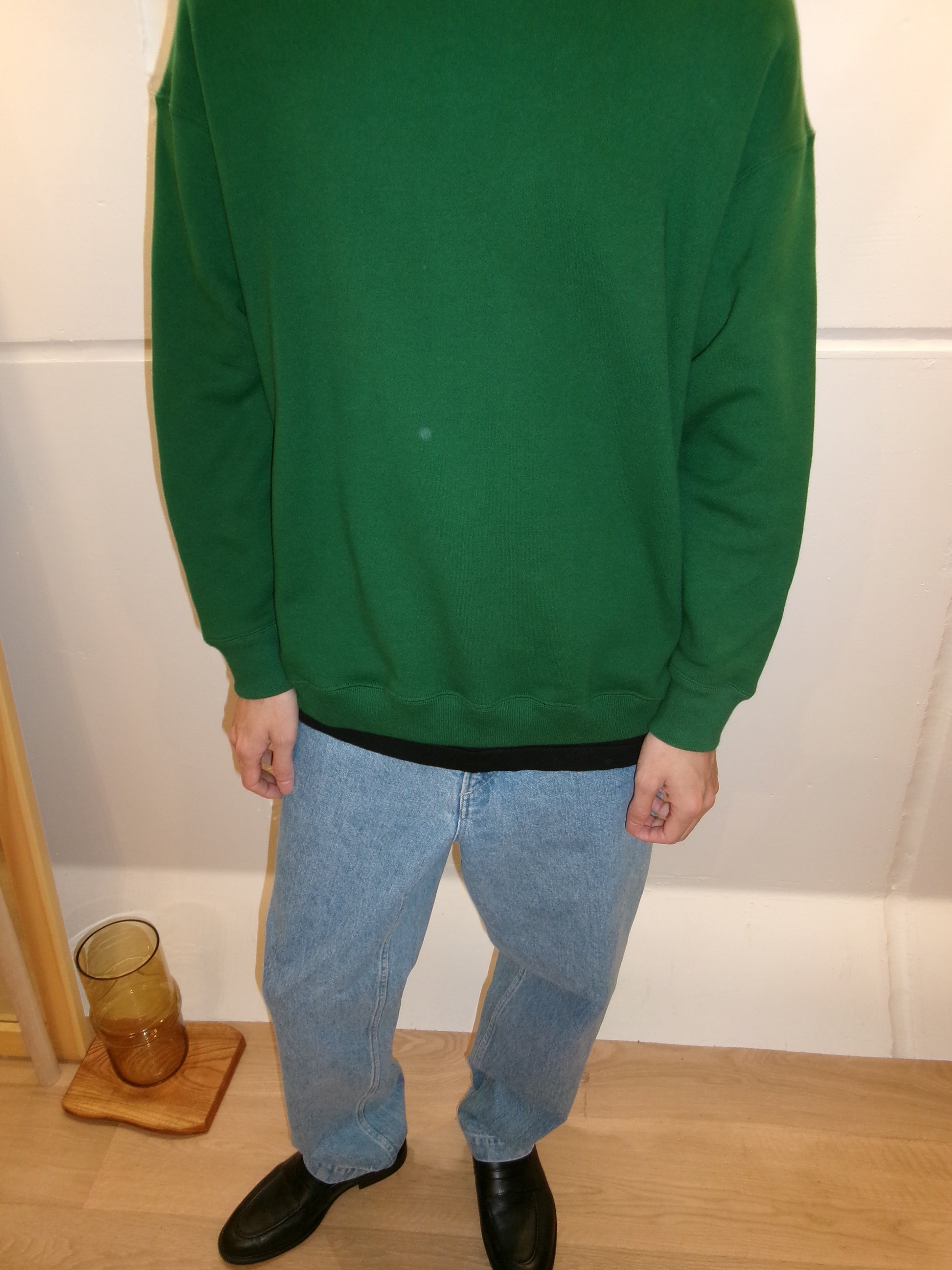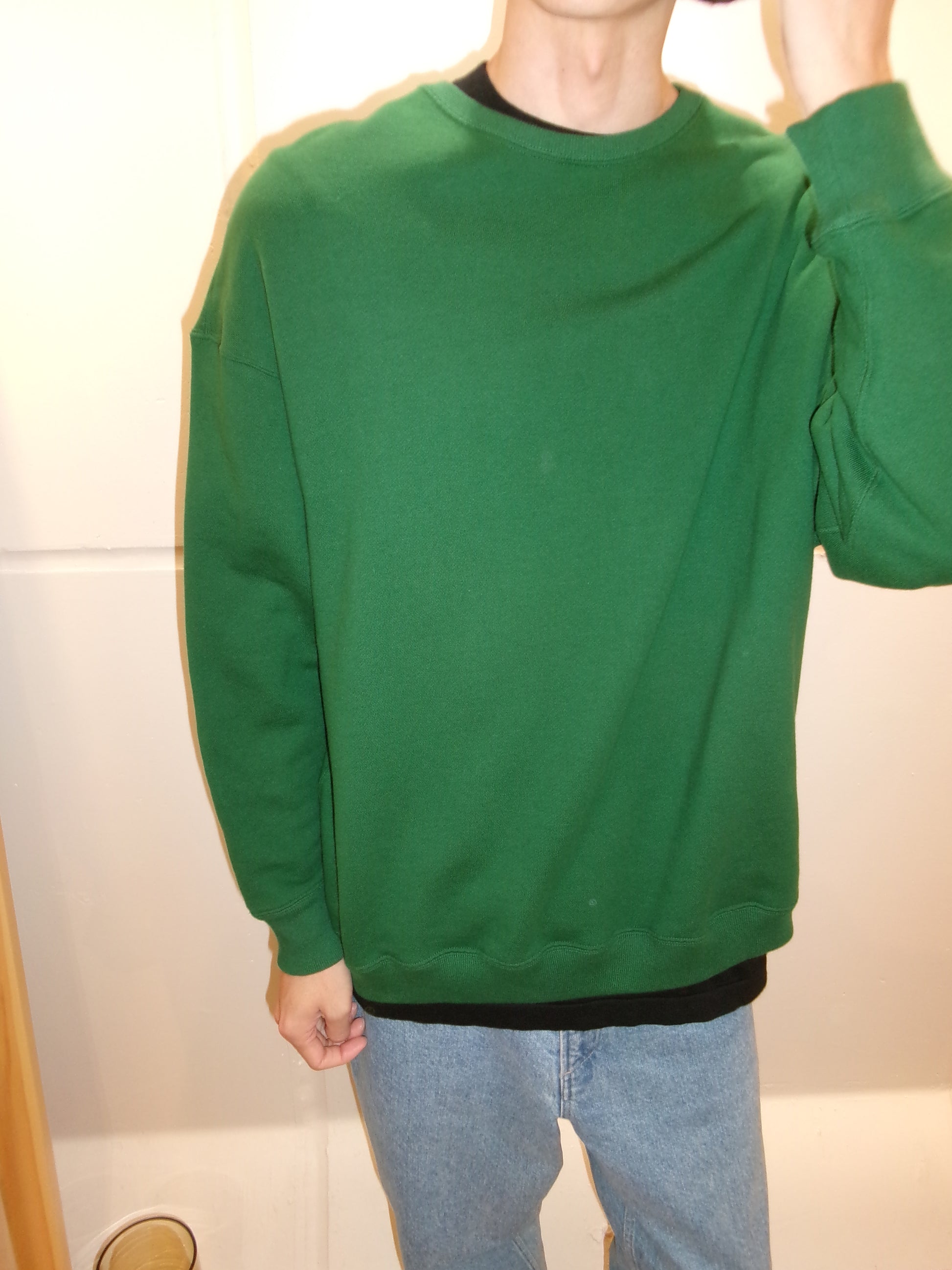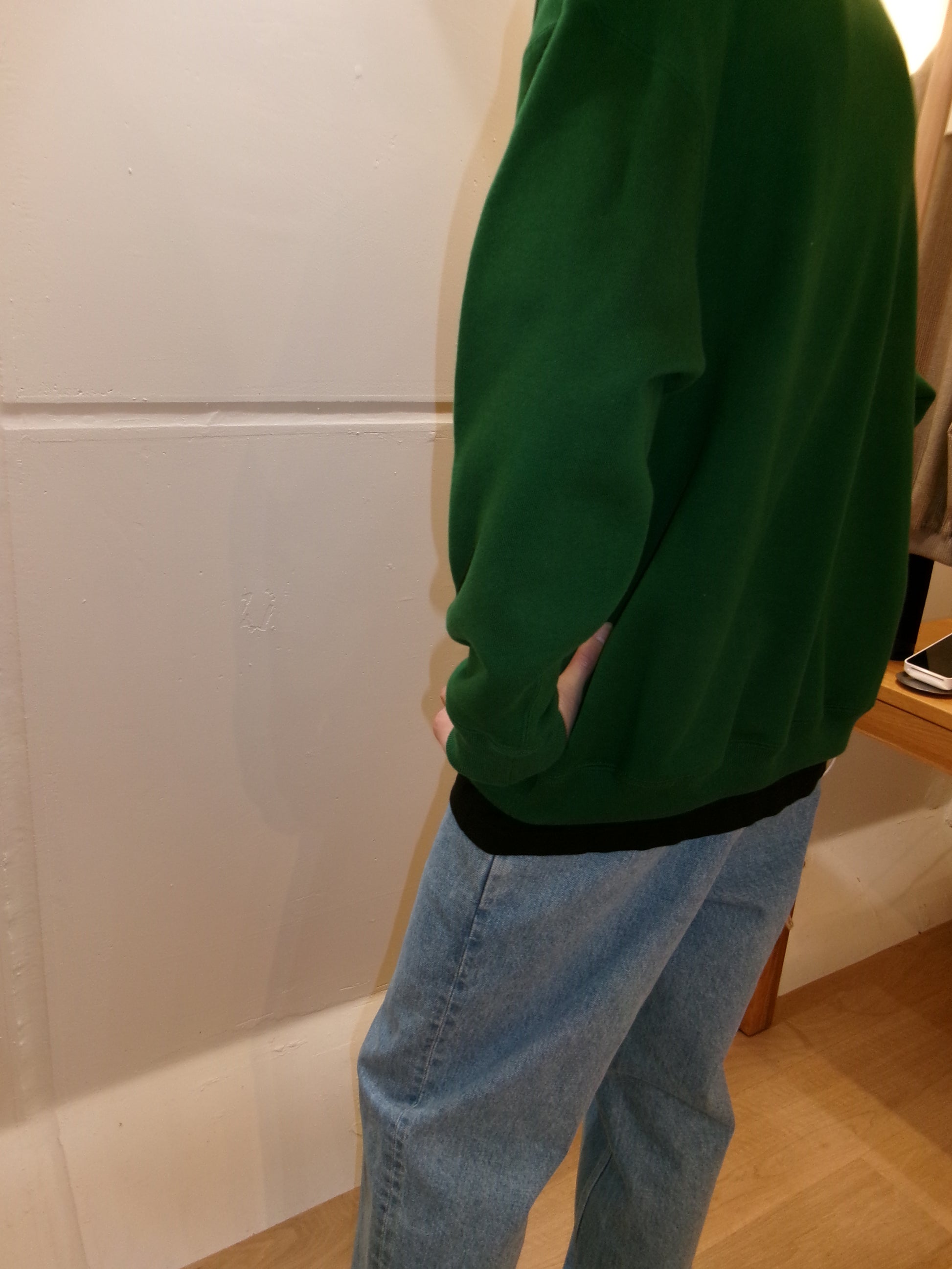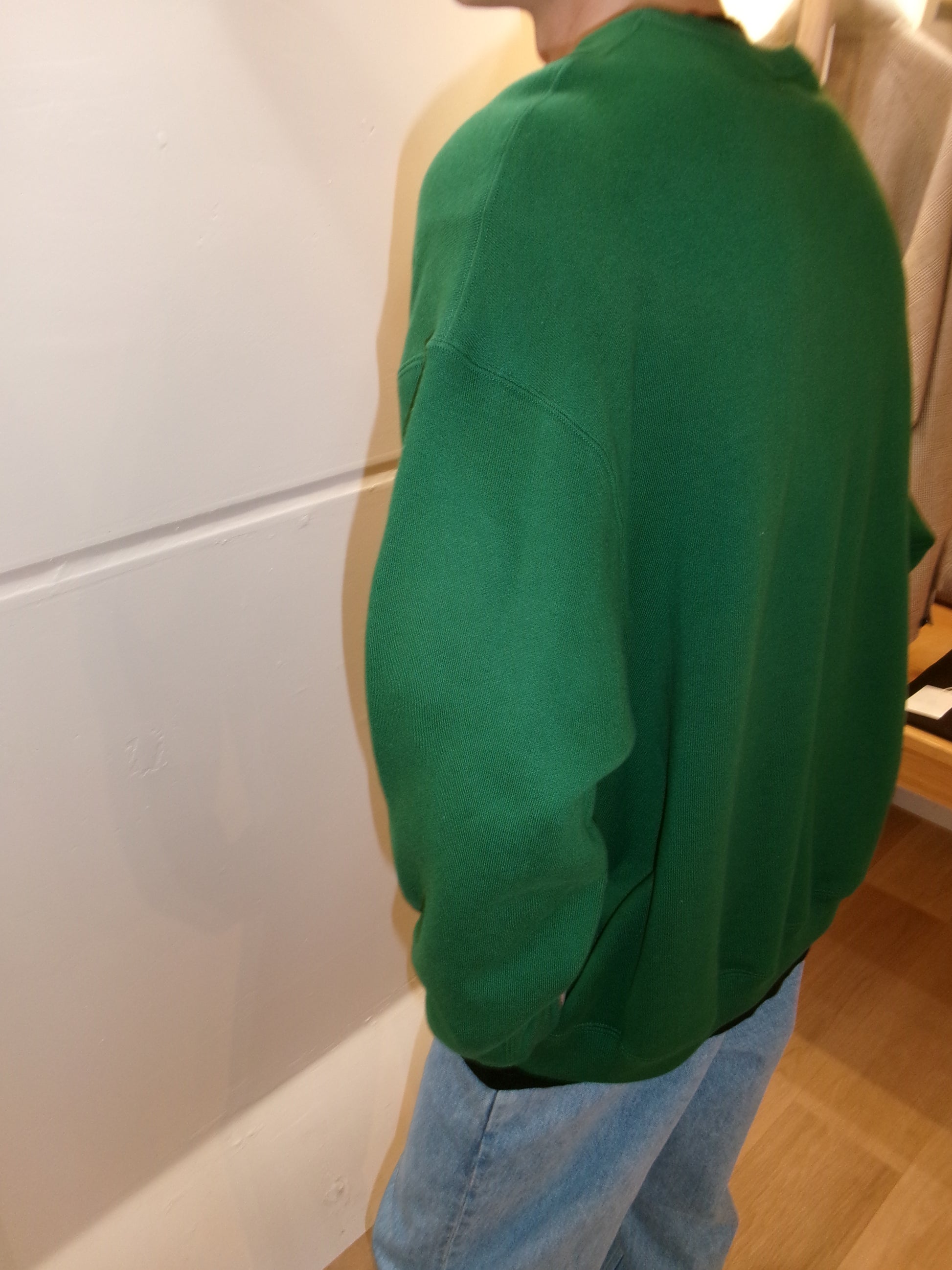 クルーネックのスタンダードスエットトレーナー 裏糸に太番手の糸を使用して編み立てた心地よい生地感とゆったりルーズなシルエット