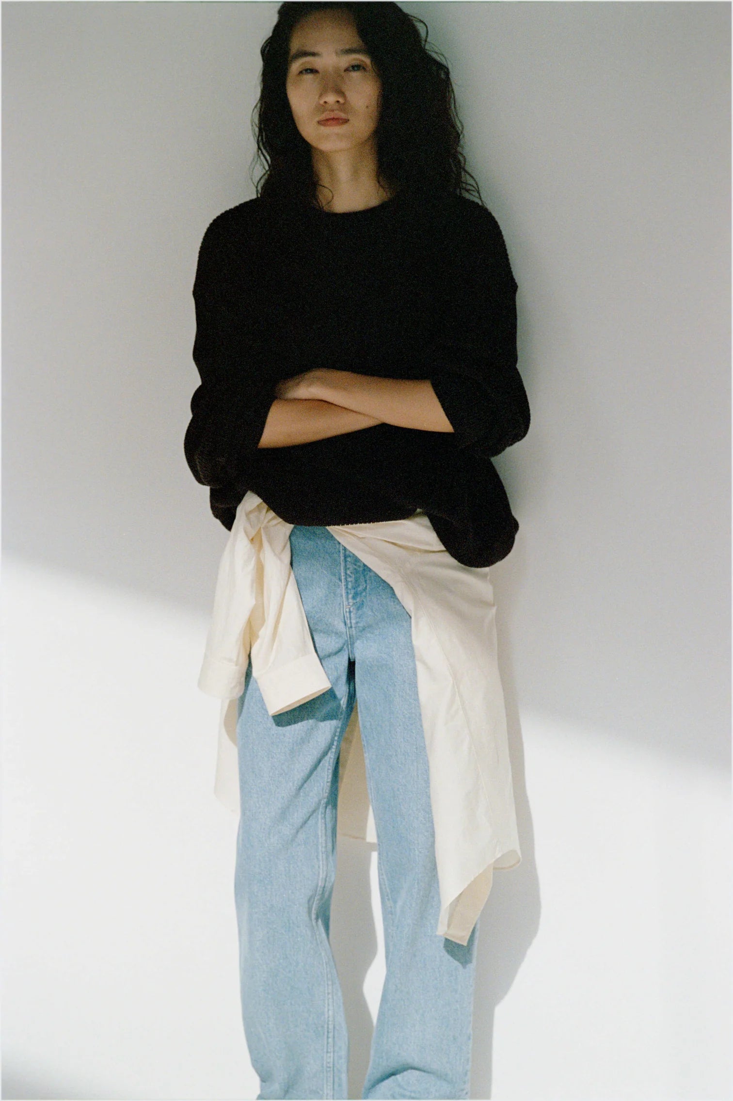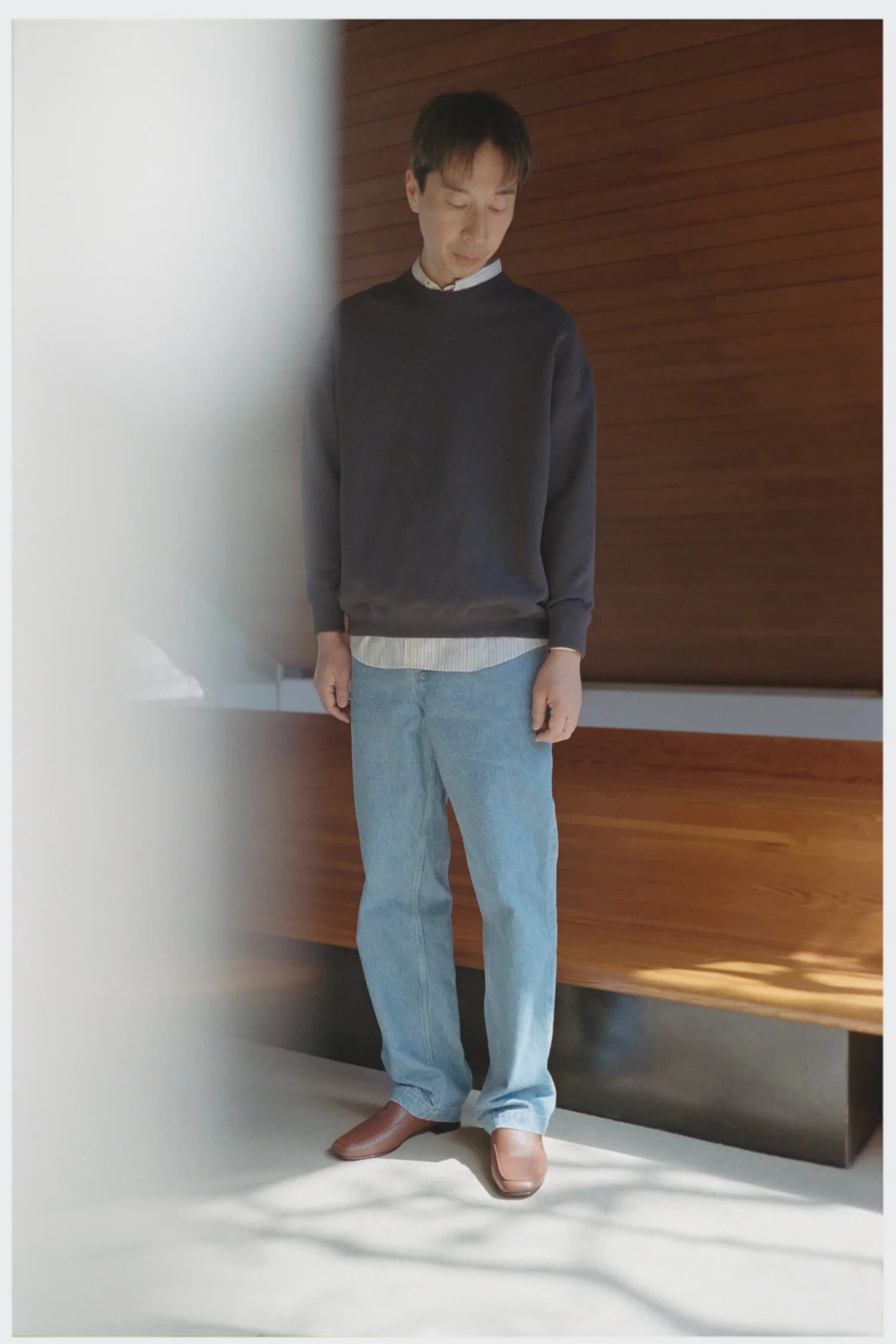 14.5ozの福山デニムを使用し、児島の工場で縫い上げたFUJIオリジナルのスラックスデニム。 FUJIならではのカジュアルアイテムを上品に仕上げるために、スラックスのパターンを用いており、後見頃は片玉縁ポケットで、前はフォワード・セット・ポケットを採用しました。ベルトに、イタリア ロスティバーレ社によるレザーを丁寧にコバ(端)を磨き、レザー専業の職人によって特殊な付け方で付けられています。