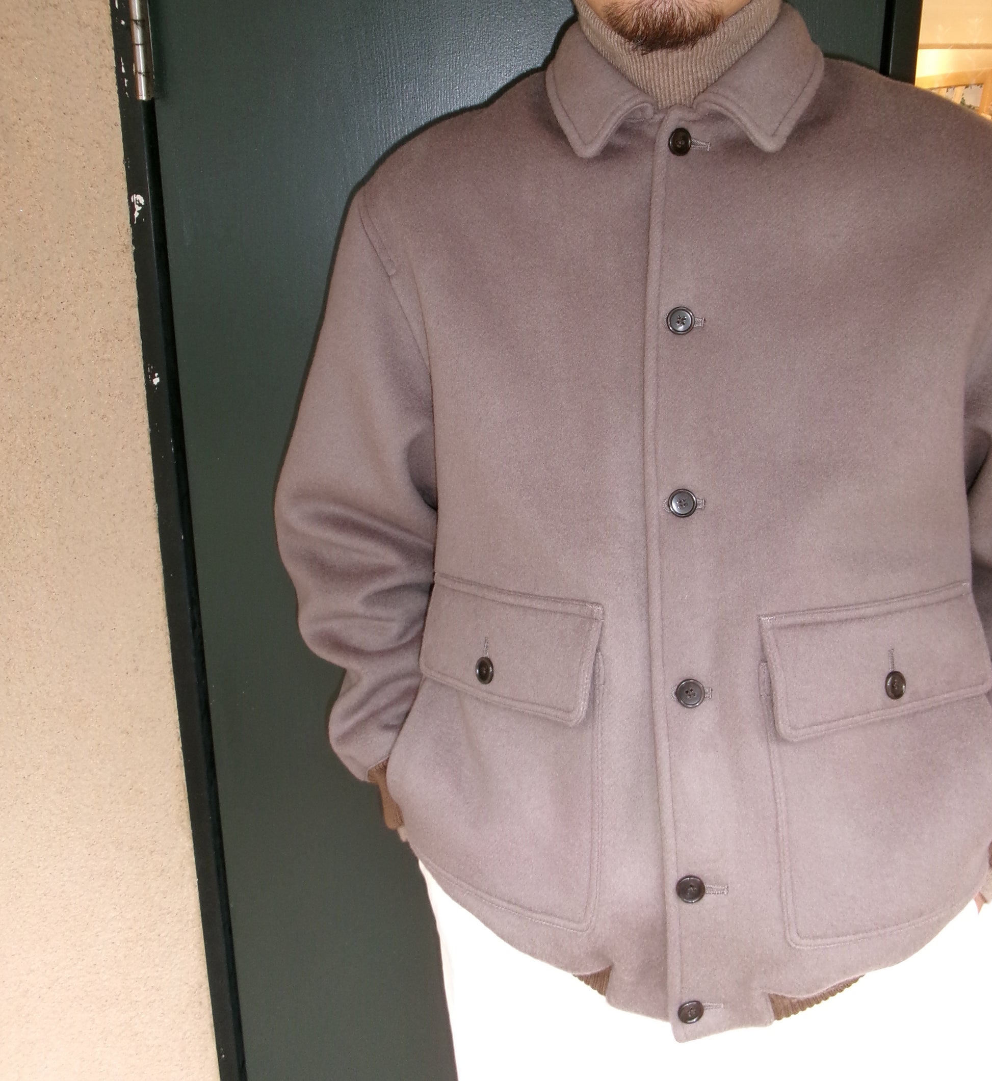 FUJI エッセンスと解釈を施したウールメルトンブルゾン。 ウールの中で一番綺麗な背中部分の、pure super 100 のラムウールに