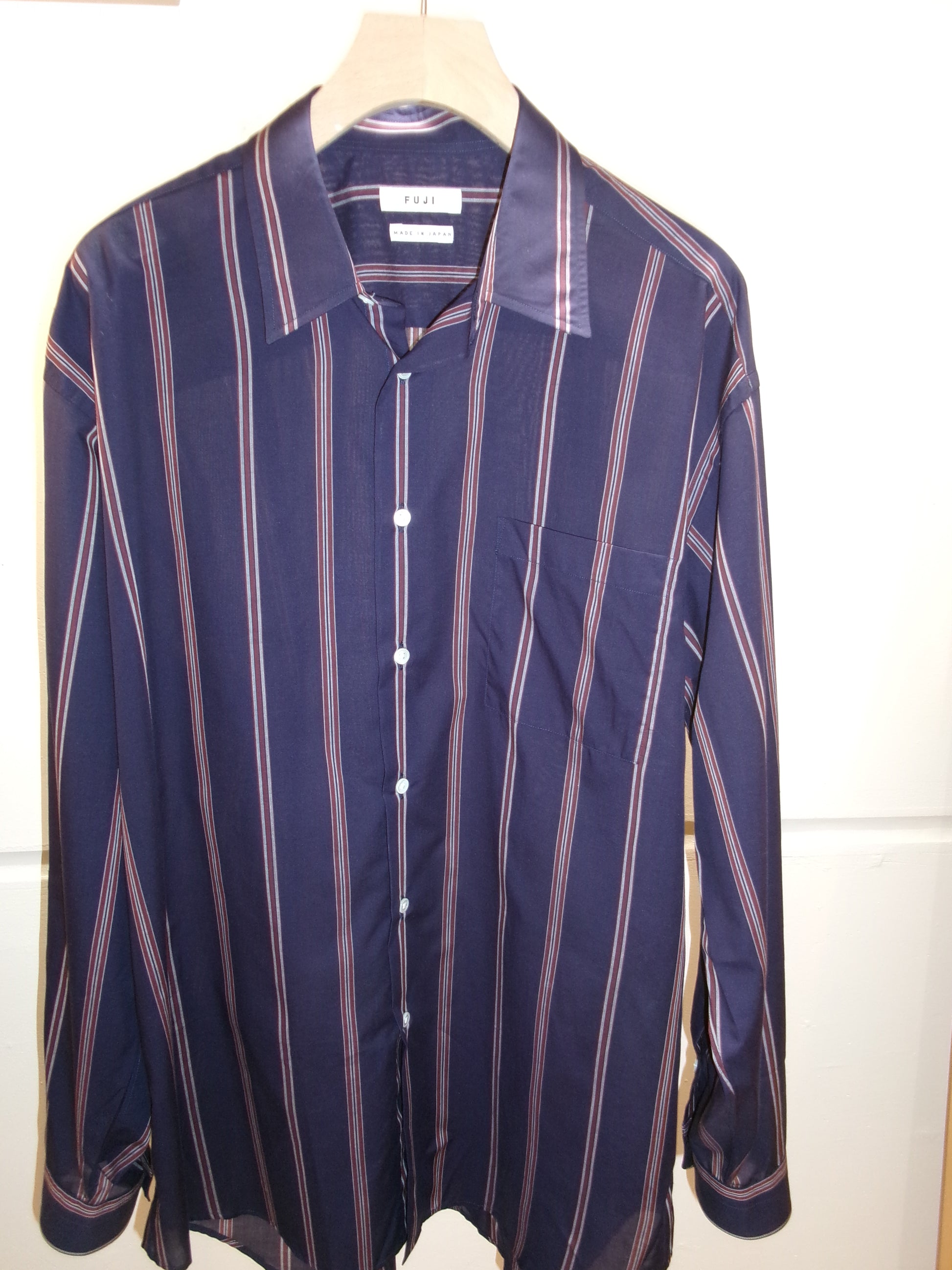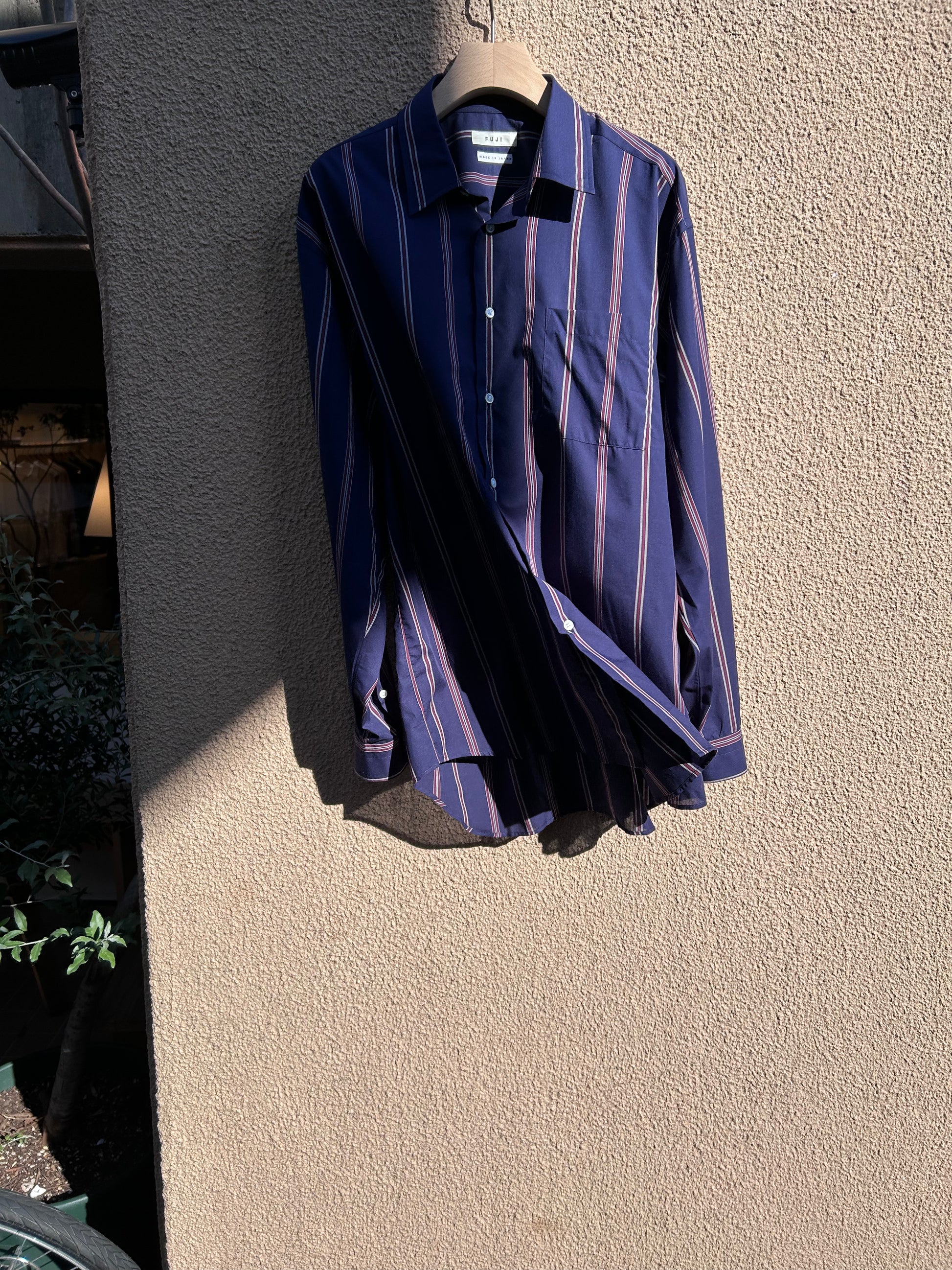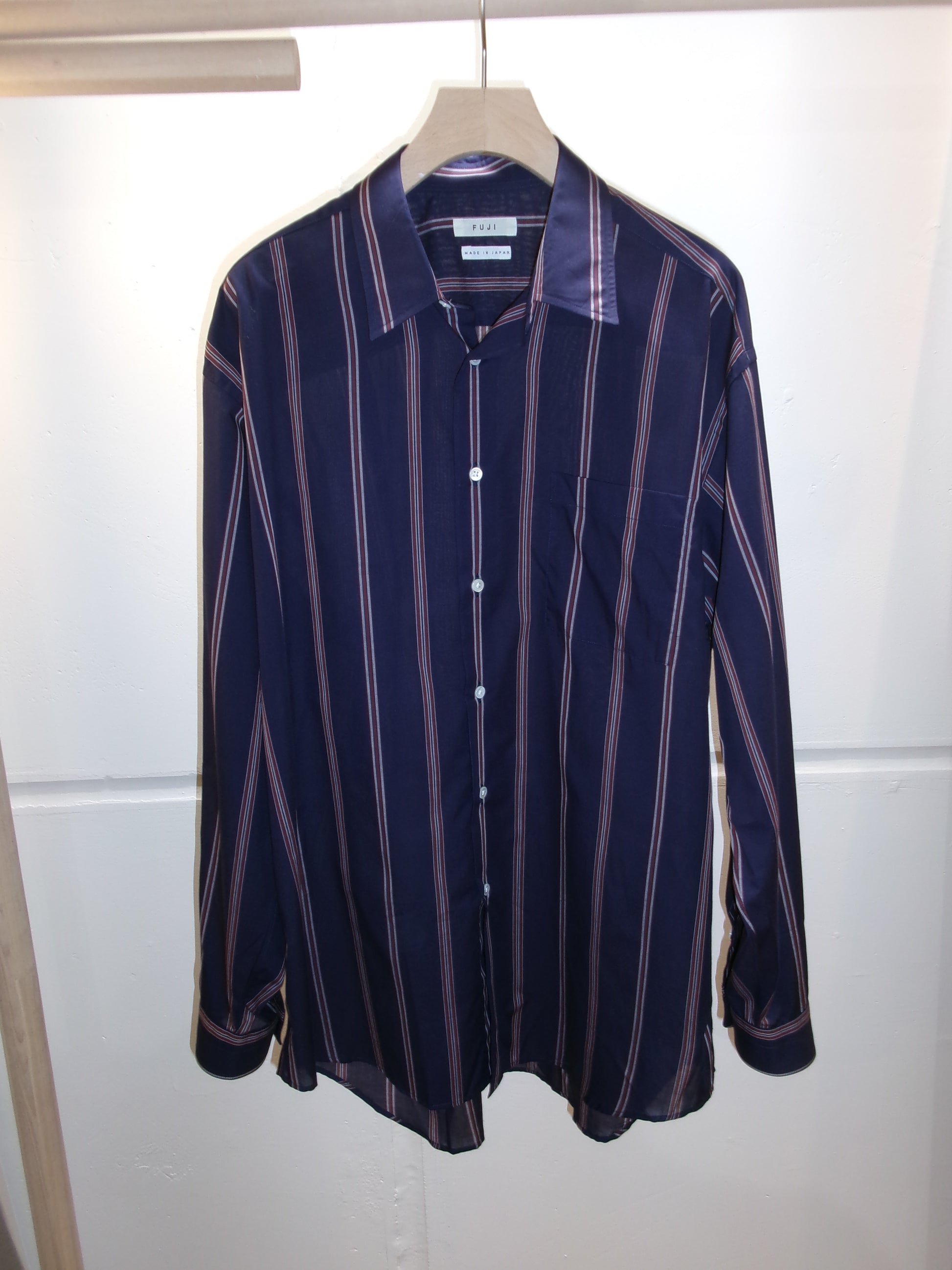 FUJI SILK COTTON STRIPE STANDARD SHIRT(NAVY)