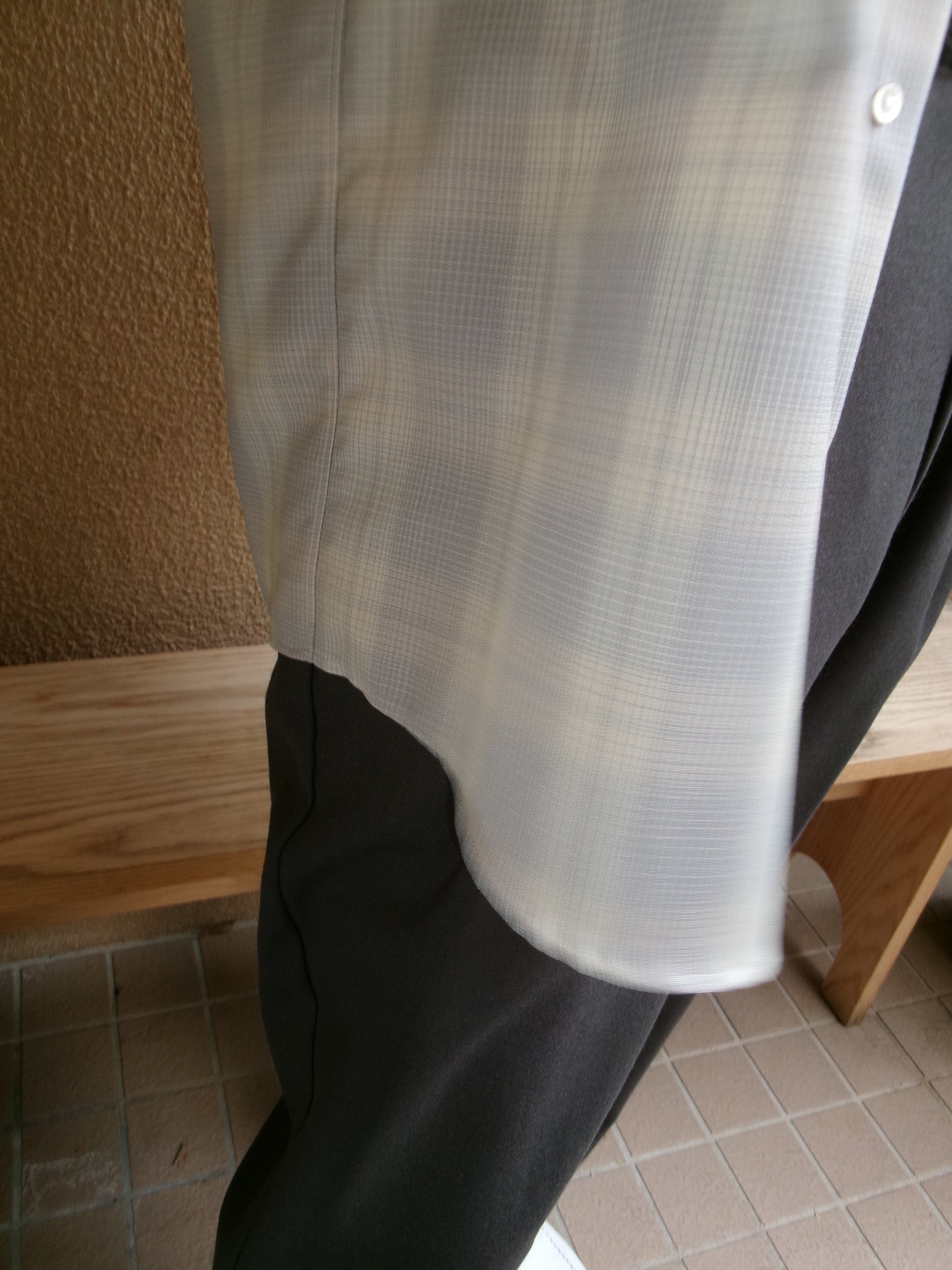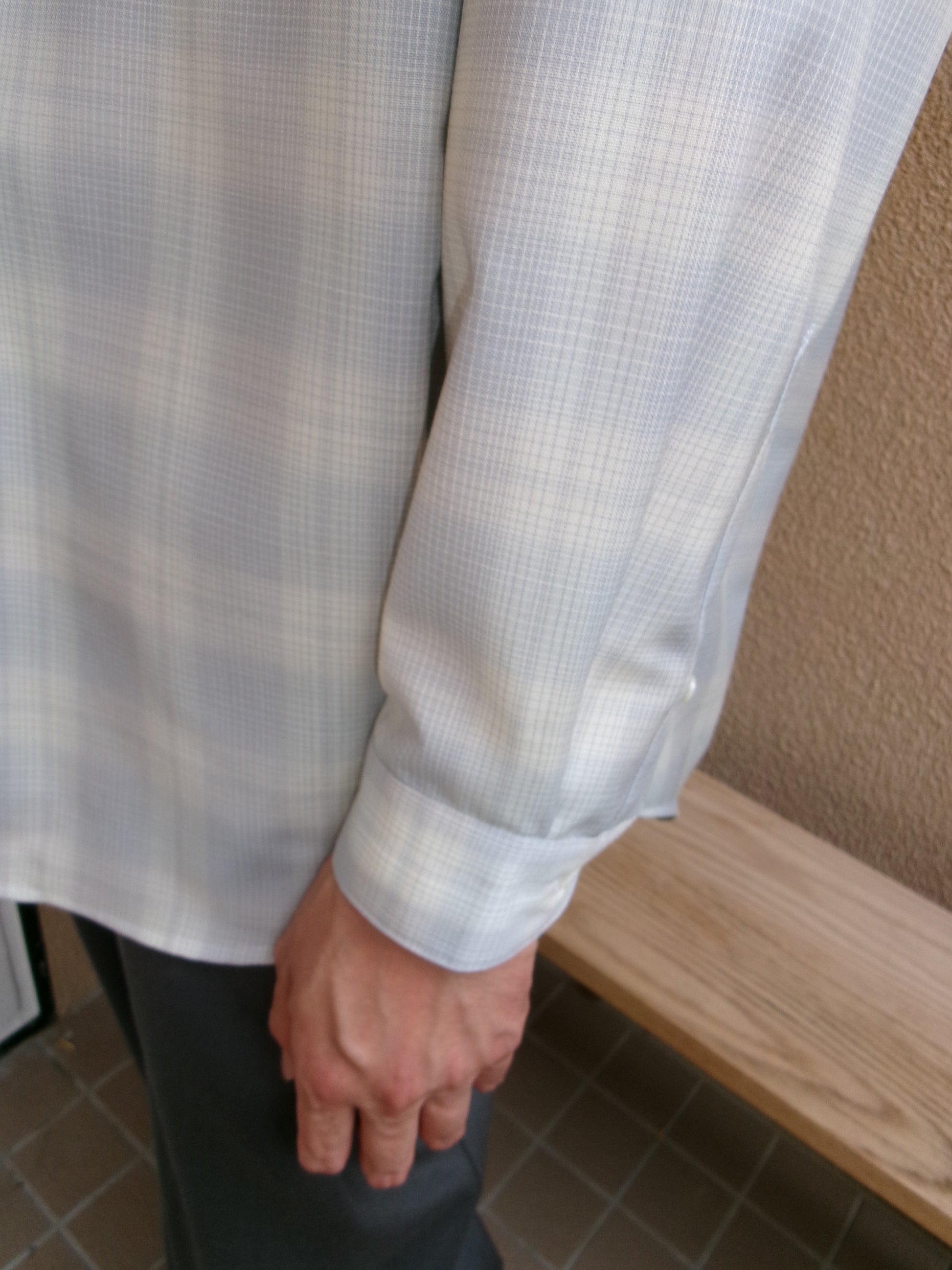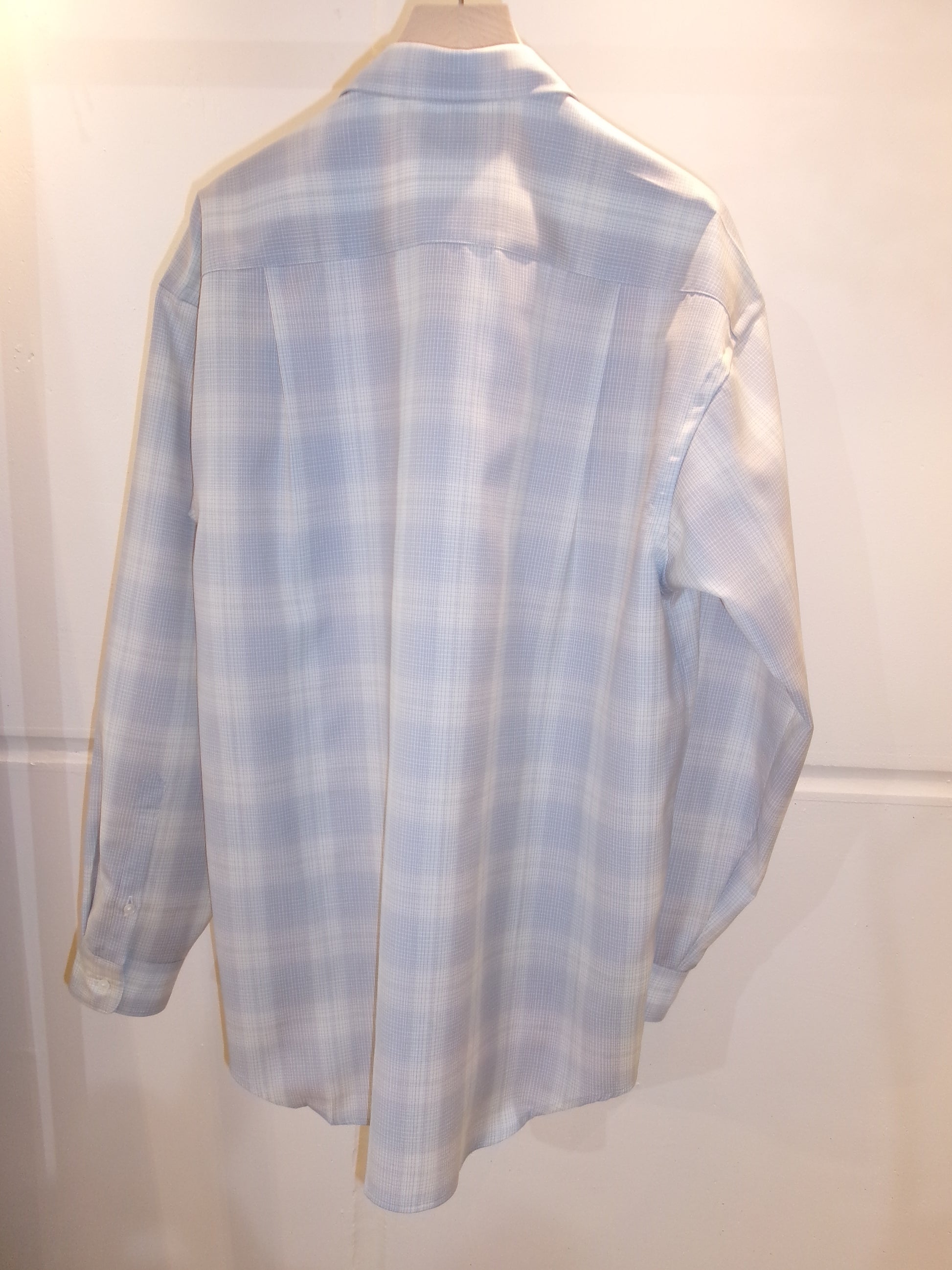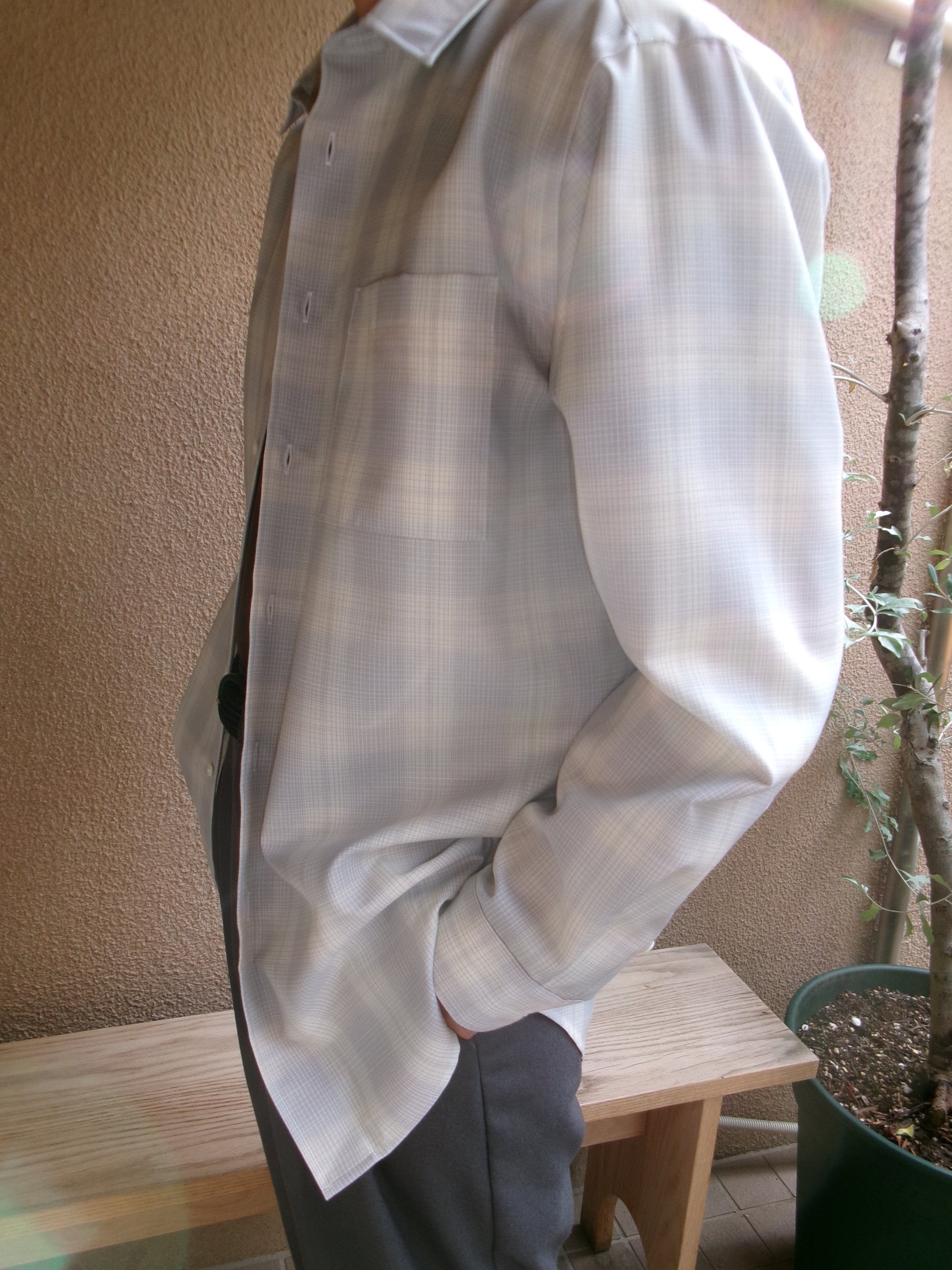 デッドストックのウールチェック生地を使用したウールチェックシャツ。 ウールのハリ感とコシのある風合いで軽やかさが特徴。清涼感のあるチェック。 リラックスシルエット、3cm 間で 21 針の丁寧な仕立てです。